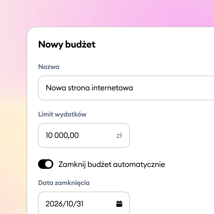 Idealne dla monitorowania opłacalności inwestycji lub projektów w firmie. Możesz utworzyć reguły budżetu, aby określone transakcje były automatycznie przypisywane do budżetu oraz utworzyć odnawialny limit wydatków w budżecie.